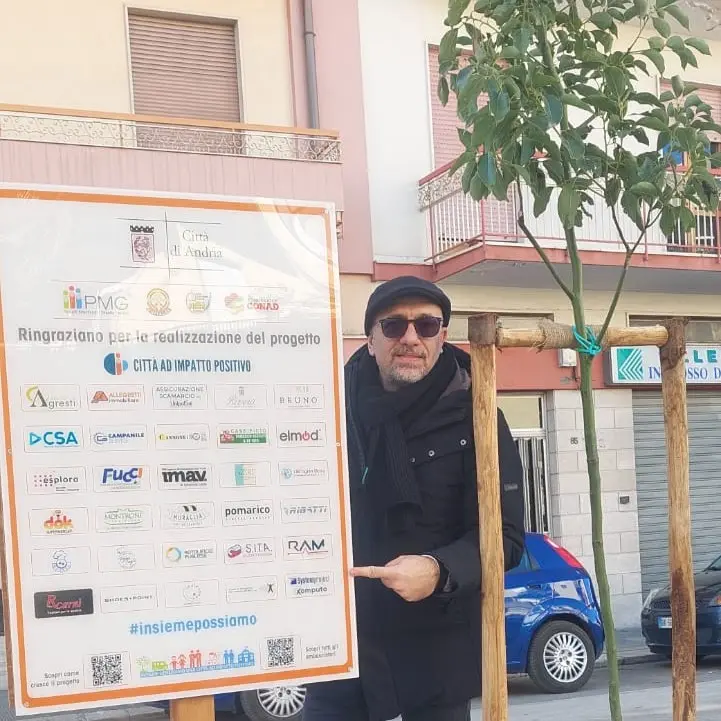 La piantumazione di alberi in via Montegrappa ad Andria, consentendo la riqualificazione ambientale di un tratto di strada molto frequentato, con sistemazione anche del marciapiede-spartitraffico centrale e generando impatto positivo su società e ambiente.
